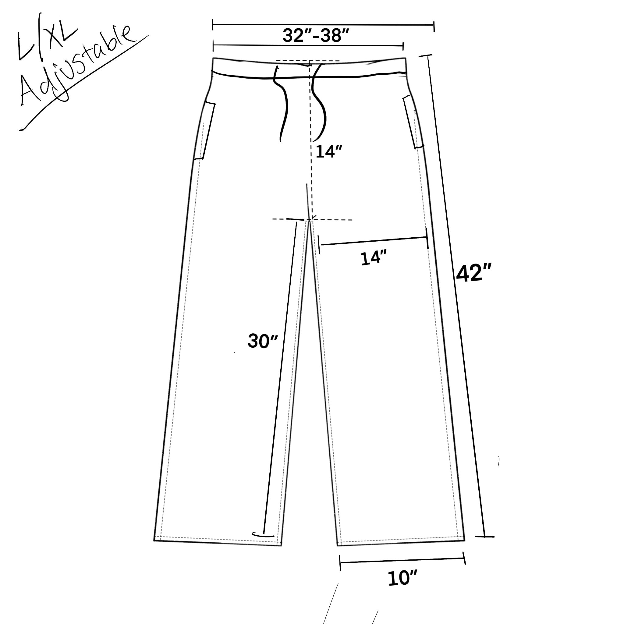 Size Large/Xlarge (adjustable 32-38 waist) (inseam 30-32)